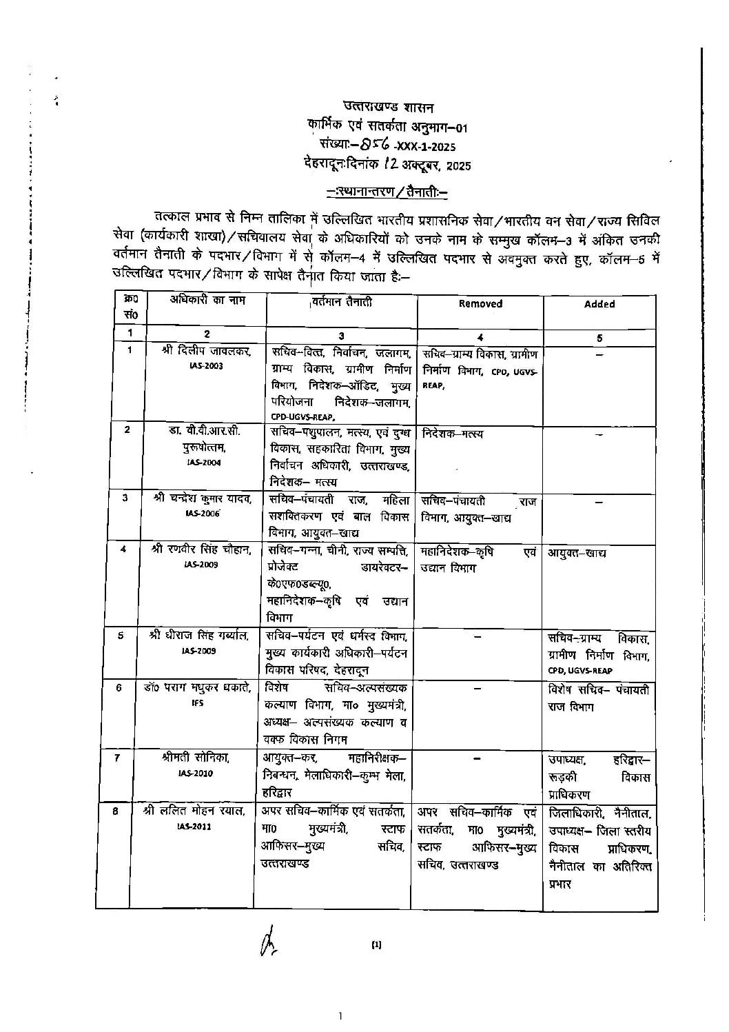 उत्तराखंड में 44 IAS और पीसीएस अधिकारियों के तबादले..देखे किसको क्या मिला