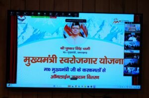 मुख्यमंत्री पुष्कर सिंह धामी ने मुख्यमंत्री स्वरोजगार योजना के तहत 3848 लाभार्थियों के बैंक खातों में 33.22 करोड़ रुपये की धनराशि का मुख्यमंत्री आवास से ऑनलाइन माध्यम से वितरण किया। उन्होंने कहा कि राज्य सरकार का संकल्प है कि उत्तराखंड का युवा नौकरी ढूंढने वाला नहीं, बल्कि नौकरी देने वाला बने।