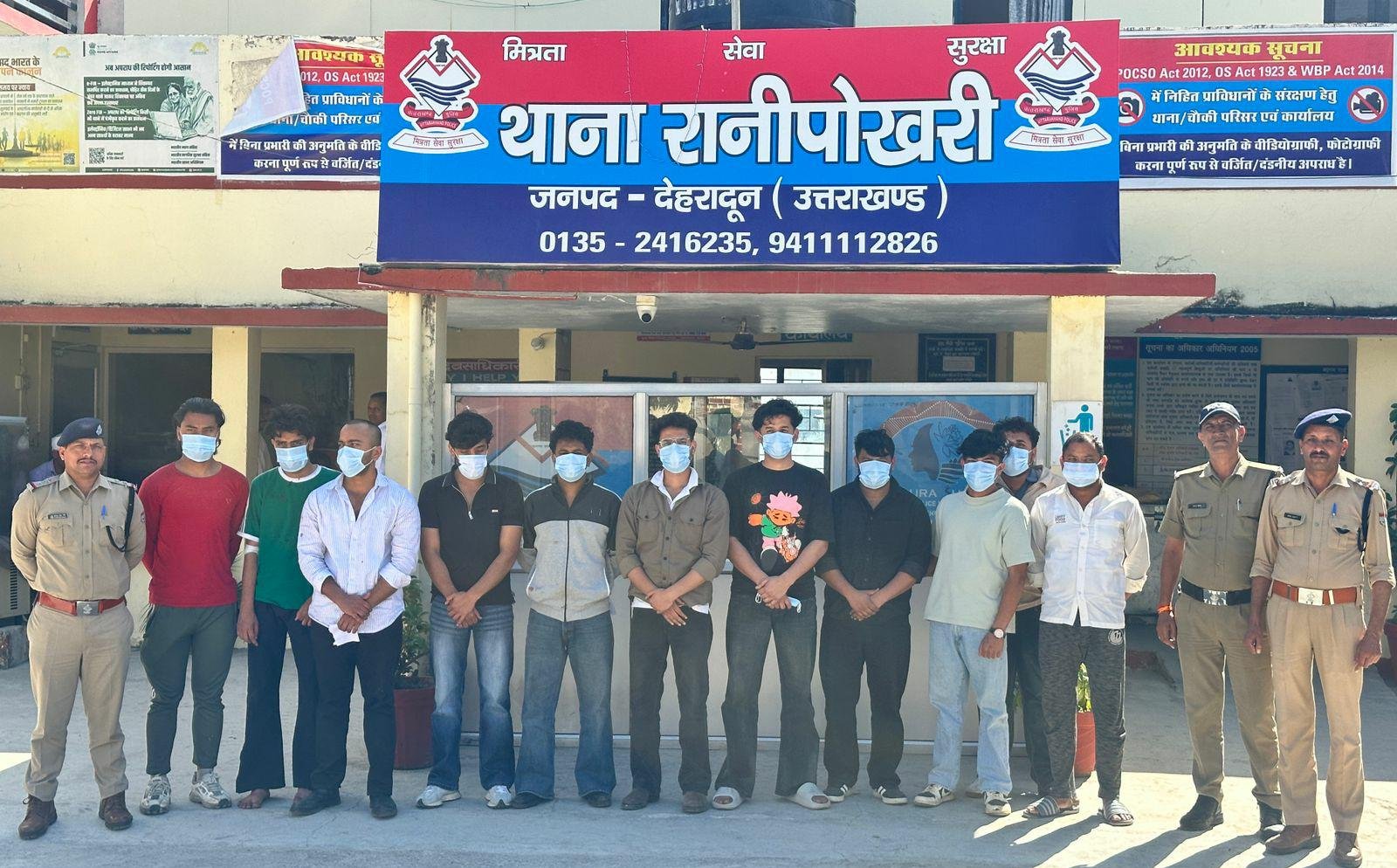 दिये गये निर्देशों के अनुपालन में जनपद के सभी थाना क्षेत्रों में अलग-अलग पुलिस टीमो द्वारा लगातार सघन चैकिंग/सत्यापन अभियान चलाया जा रहा है। इसी क्रम में थाना रानीपोखरी पुलिस द्वारा दिनांक 09/04/2026 की रात्रि गश्त के दौरान सूर्यधार रोड़ स्थित ड्रीम वैली रिजॉर्ट के पास 11 व्यक्ति, जो देर रात्री किसी बात को लेकर आपस में झगड़ा करते हुए हो हल्ला मचाते हुए दिखाई दिये, जिन्हें मौके पर पुलिस टीम द्वारा समझाने का प्रयास किया गया तो दोनेा पक्ष और अधिक उग्र होकर एक-दूसरे के ऊपर जोर-जोर से चिल्लाते हुए लडाई-झगडा करने पर उतारू हो गये।