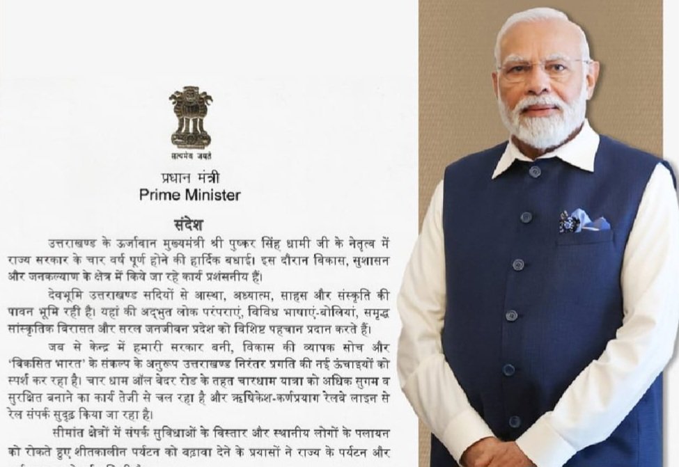 प्रधानमंत्री का संदेश – चार साल में विकास और सुशासन की नई पहचान बना उत्तराखंड